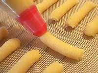 Retourner en cours de cuisson puis tremper chaque extrémité dans le chocolat fondu
